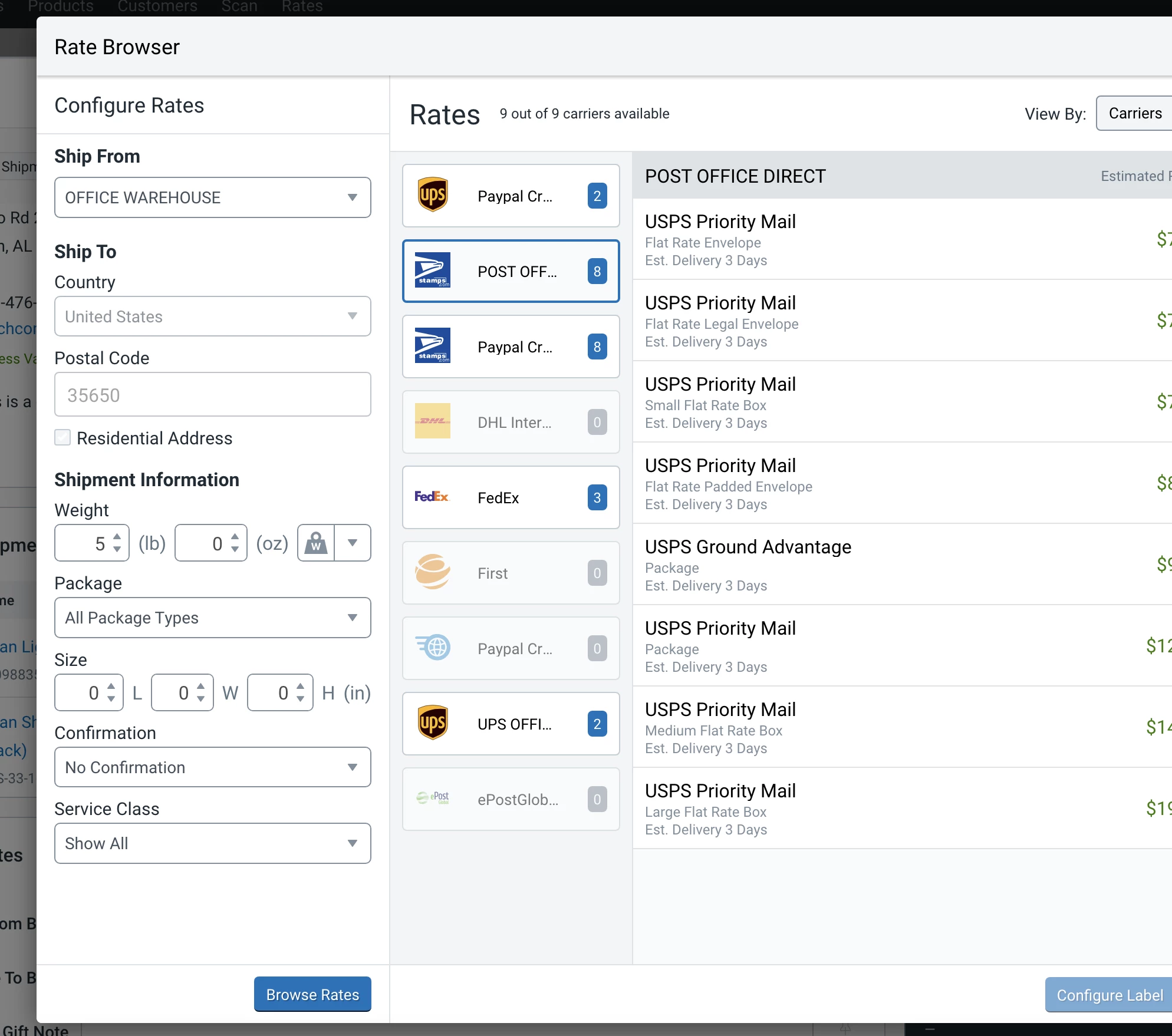 When using the Rate Calculator on a order, it would be great to see "ALL PACKAGE TYPES" on the first view without having to go to "Packages" to select "All Package Types"