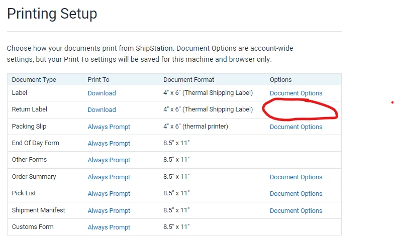 Currently, if you have 4x6 set up for printing outbound labels, return labels automatically get that same format. I'd like to be able to change the Document options on just return labels to 8.5x11 but there is no option to.