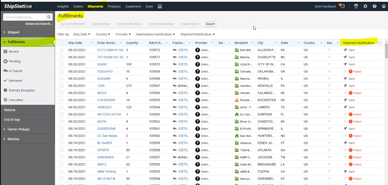 We need the capability to export to Excel the “Ship Notification” field as part of the general export. We need to know – Sent/Not Sent/Failed