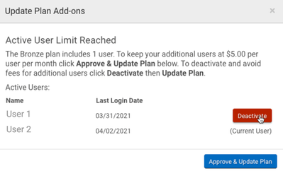 - We’ve made it easier to remove users from an account when you downgrade your subscription plan. You can now do so within the plan change workflow instead of moving to the User Management screen before changing your plan level.