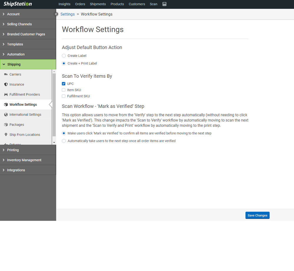 I didn't have the lightning bolt beside the Create + Print Labels button, nor did I have the QuickShip popup menu or Workflow Settings options... they simply weren't there.