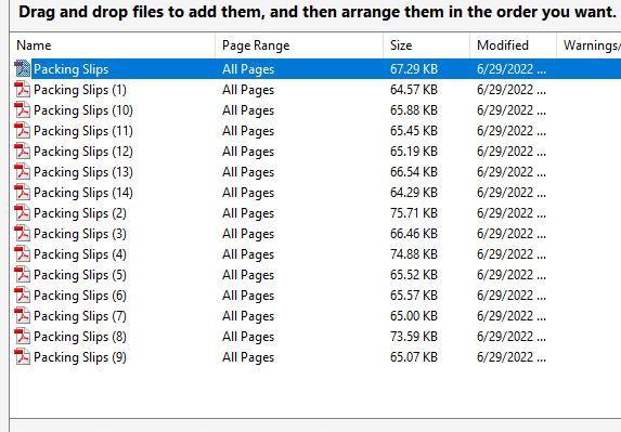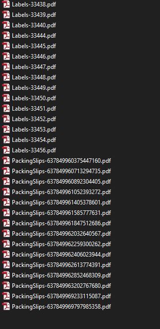 The new versions naming scheme for the packing slips has sort issues in windows, adobe etc. When combining pdf's into one you can see below there is cause for panic. Orders could be shipped to the wrong customer as they are sorted incorrectly. This was never an issue with the old naming. In this instance the random naming for packing slips makes sense, unlike the random naming convention for the label pdfs.