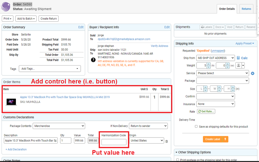 Upon receiving this HC, we should be able to send a message to ShipStation's Update Product API with the HC to set on the field. My main question is the one on the subject line and if so, how do we go about making this happen. Lastly, how can these request be added to the control's "onclick" function?