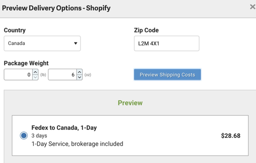 Here is an actual shipment to Canada from New York USA. My negotiated pricing is US$18.09
