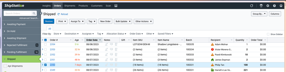 ShipStation dashboard