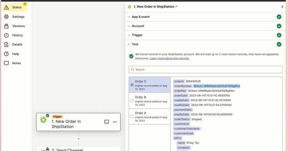 - ShipStation-->Zapier Connection: Instead of sending the 4-character order number to Zapier, ShipStation sends a long, entirely different ID (e.g. SEAuto-lWkR9qQvQ02AaFKERg9Itw).