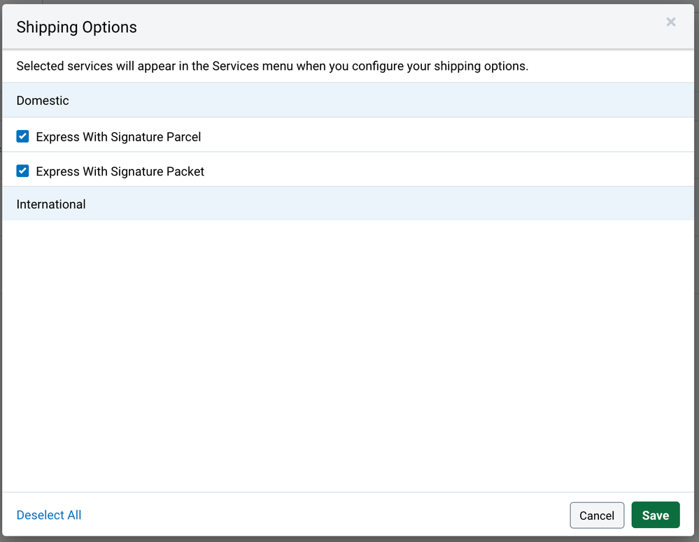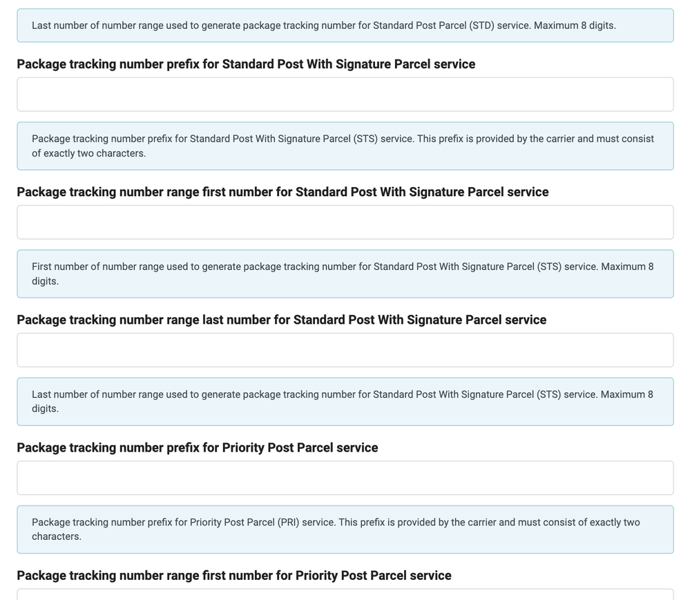 We've recently started working with An Post in the Republic Of Ireland. The current Carrier Integration accepts settings for all of their available services, but only two services are actually available to select from (as shown in the screenshots). We've implemented a workaround, but I'm sure it would be beneficial to us and other users of the integration to be able to select from all of the available services.