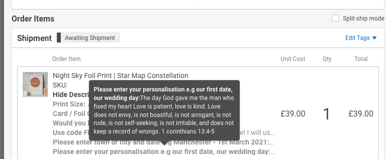Hey, it seems there has been an update today whereby the full extent of the personalisation from orders can only be able to be seen via a pop up window if its long text.
